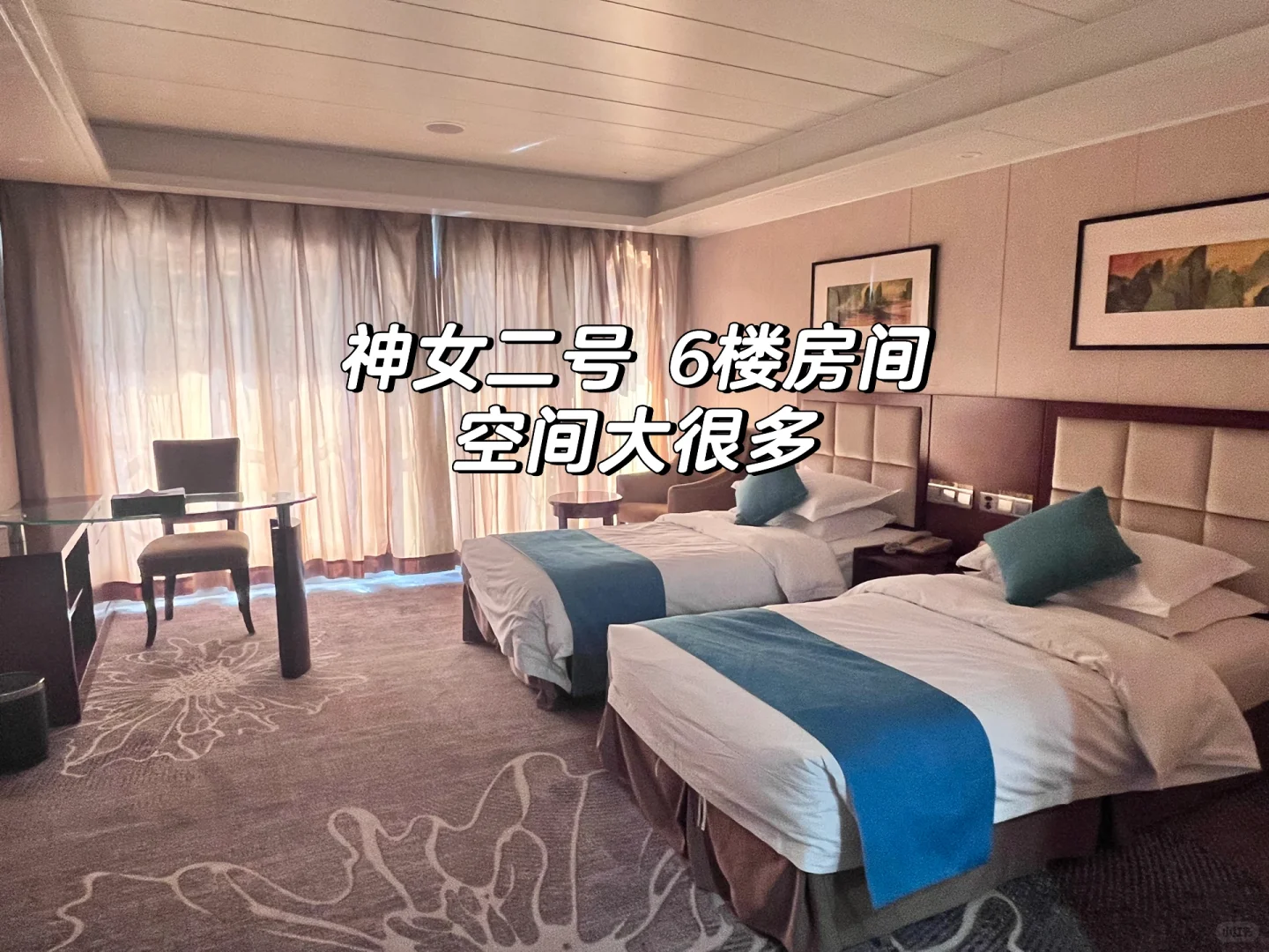 ⛴️ 登船&游轮体验: 三点半提前登船,先领号码牌,严格按“先到先得”排号,五点开始办入住 。两大一小想加床,神女二号只有4楼房间能安排,最后定了四楼船头左舷,