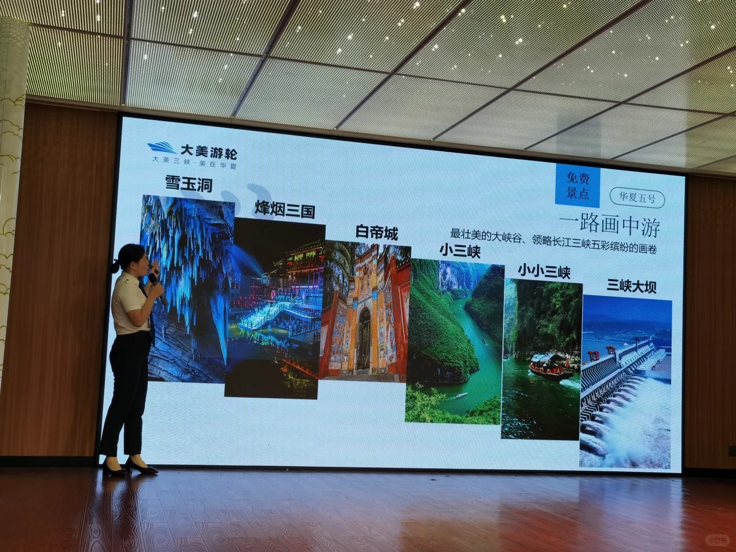 Day1:下午4点重庆朝天门码头登船,领房卡、自助晚餐。晚上三峡游轮安全说明会,鸣笛启航。